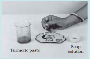 Turmeric is natural indicator which turns its color from yellow to red in basic solutions.