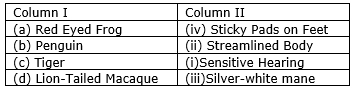 Match the animals mentioned in Column I with their characteristic features given in Column II.