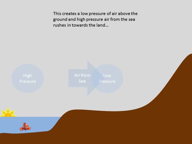 A flat in Mumbai with a balcony facing the sea has some clothes hung on a clothes line in the balcony. Towards which direction the clothes will be blown in the afternoon? Explain.