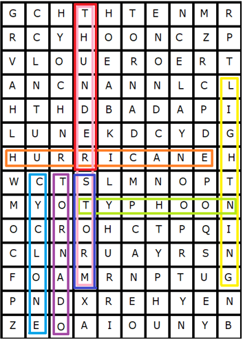 Identify the names of six natural phenomena from the following word diagram given as Figure 8.5.