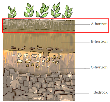 The A-horizon layer of the soil is soft, porous and retains water. The roots of small plants are grow in this layer. This layer is also called topsoil.