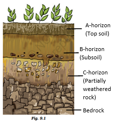 Locate the following zones given as boxed items in Figure 9.1 which shows a diagram of soil profile.