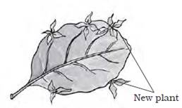 The ‘eye’ of the potato and the buds in the margin of leaves of Bryophyllum plant can produce new plants by vegetative propagation. Plants produced from vegetative propagation takes less time to grow when compared to the plants produced from seeds.