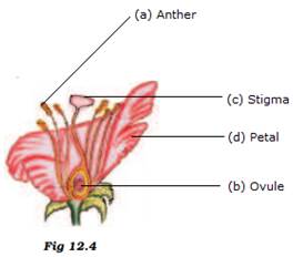 In the figure of a flower given in Figure 12.4, label the parts whose functions are given below and give their names.