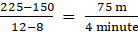 c) At time 12-minute distance is 225 m and at time 8-minute distance is 150 m so speed is distance divided by the time taken