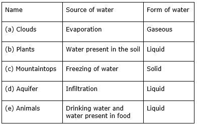 From where do the following usually get water? In which form is water present in them?