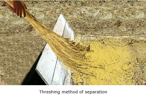 Which amongst the following methods would be most appropriate to separate grains from bundles of stalks?