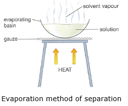 By the process of evaporation we can get back solid copper sulphate from the solution. The process of evaporation for separating a mixture is based on the fact that liquids vaporize easily whereas solids do not.