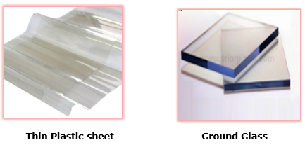 “P” is the sheet of some transparent material like thin plastic, ground glass etc. Because only the transparent materials allows light to pass through them without changing the path of light. Since the path of light is not changed therefore we get image on screen. Therefore the “P” is some transparent materials. Figure below shows some of the transparent materials.