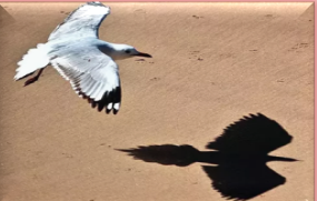 When they are at some lower height or near to the ground than we can see their shadow because ground acts as screen there and we see their shadow the ground. The figure below shows the shadow of bird flying near to the ground.