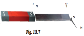 Boojho kept a magnet close to an ordinary iron bar. He observed that the iron bar attracts a pin as shown in Fig. 13.7.