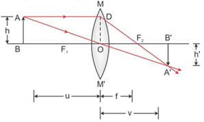 What is called the magnification of an image? Derive the formula of magnification for spherical lens.