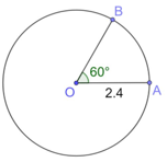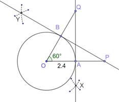 Take a point O and draw a circle of radius, 2.4 cm. Draw two radii OA and OB inclined to each other at 60°. Construct tangents at points A and B which intersect at point T. Measure angle ATB.