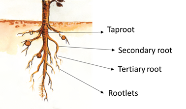 Label the diagram of the taproot system and write its significance.