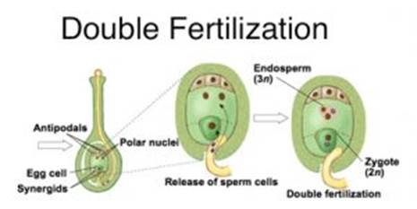 Define the term double fertilization in plants. After fertilization name the part in each case which develops into (i) the fruit (ii) the seed.