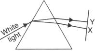 In the figure given alongside, a narrow beam of white light is shown to pass through a triangular glass prism. After passing through the prism, it produces a spectrum YX on the screen.