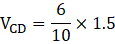 Now the potential difference across CD and CE is proportional to the resistances, so