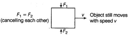Two persons are applying forces on two opposite sides of a moving cart. The cart still moves with the same speed in the same direction. What do you infer about the magnitudes and direction of the forces applied?