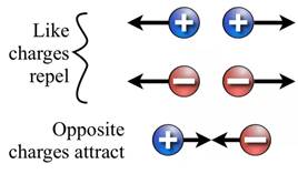When two charged objects are brought close to each other, they may attract or repel depending on the types of charges they carry: