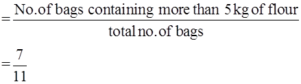 Find the probability that any of these bags chosen at random contains more than 5 kg of flour