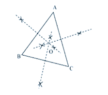 We can find circum centre O of this triangle by drawing perpendicular bisectors of the sides of this triangle