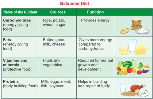 A balanced diet should contain all the essential nutrients for the body to work. It should have appropriate proportion of carbohydrates, lipids, proteins, vitamins, minerals, water and roughages. The figure below shows the importance of a balanced diet.