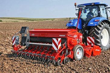 (b) Sowing is the most important step in crop production. It is process of putting the seeds into the soil for growing crops. One must always use good quality seeds for sowing. It can be easily done by a Seed Drill as it saves time and labour. The picture shows seed drilling using a tractor.