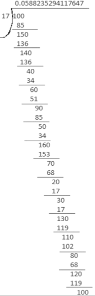 1/17 = 0.0͞5͞8͞8͞2͞3͞5͞2͞9͞4͞1͞1͞7͞6͞4͞7