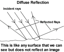 When all the parallel rays reflected from a plane surface are not parallel, the reflection is known as diffused or irregular reflection