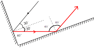 Two mirrors meet at right angles. A ray of light is incident on one at an angle of 30° as shown in Fig. 16.19 Draw the reflected ray from the second mirror.