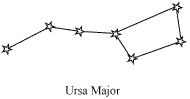 (a) Ursa Major appears like a big dipper. There are three bright stars in the handle and four stars in the bowl of the dipper as shown in below figure.