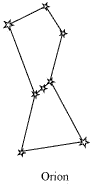 (b) Orion appears like a hunter. Three bright stars appear in the belt, while five bright stars are arranged in the form of a quadrilateral as shown in the below figure.