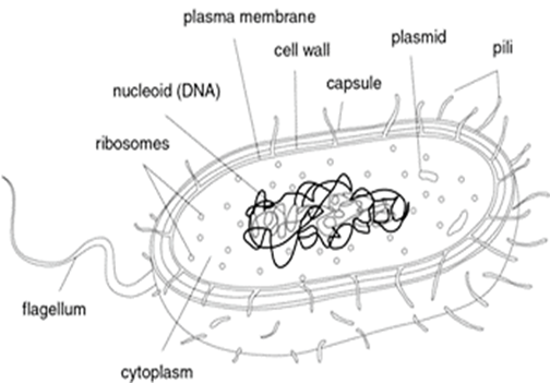 Draw a diagram of a prokaryotic cell and label at least four parts in it.