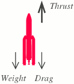 A rocket has been fired upwards to launch a satellite into its orbit. Name the two forces acting on the rocket immediately after leaving the launching pad.