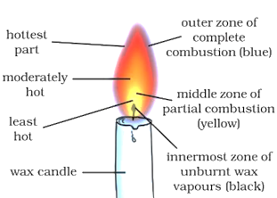 Make a labeled diagram of a candle flame.
