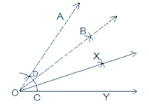 Step3: Again angle BOY is bisected such that ∠AOY is formed.