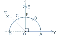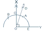 Step 4: Now, taking B and C as centres, arcs are made to intersect at E and EOY = 900is made.