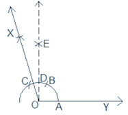 Step 4: Taking A and B as centre one by one, arcs are made to intersect at X and XOY = is drawn.