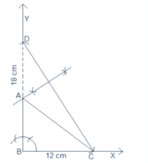 Step 3: Cut off a line segment BD = 18cm is made on BY. Join CD.