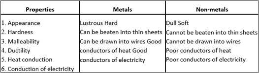 Some properties are listed in the following Table. Distinguish between metals and non-metals on the basis of these properties.