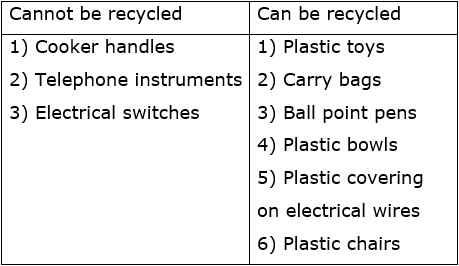 Telephone instruments, plastic toys, cooker handles, carry bags, ball point pens, plastic bowls, plastic covering on electrical wires, plastic chairs, electrical switches.