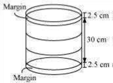 In Fig. 13.12, you see the frame of a lampshade. It is to be covered with a decorative cloth. The frame has a base diameter of 20 cm and height of 30 cm. A margin of 2.5 cm is to be given for folding it over the top and bottom of the frame. Find how much cloth is required for covering the lampshade