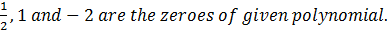 Thus, 2, 1 , 1 are the zeroes of the given polynomial.