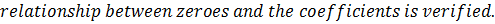 Verify that the numbers given alongside of the cubic polynomials below are their zeroes. Also verify the relationship between the zeroes and the coefficients in each case:
