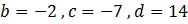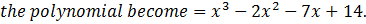 Find a cubic polynomial with the sum, sum of the product of its zeroes taken two at a time, and the product of its zeroes as 2, -7, -14 respectively.