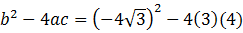 Discriminant = b2 − 4ac = (− 6)2 − 4 (2) (3) = 36 − 24 = 12
