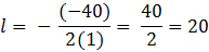 Discriminant = b2 − 4ac = (− 40)2 −4 (1) (400) = 1600 − 1600 = 0