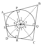 Let ABCD be a quadrilateral circumscribing a circle centred at O such that it touches the circle at point P, Q, R, S.