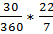 Area of sector of 30° =