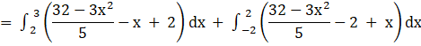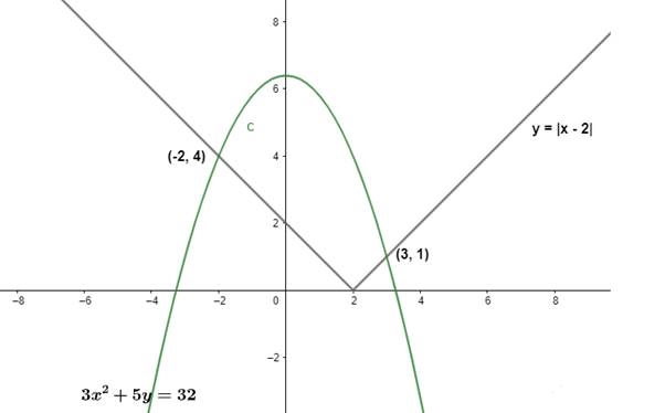 The area enclosed by the curves 3x2 + 5y = 32 and y = |x – 2| is ![]()